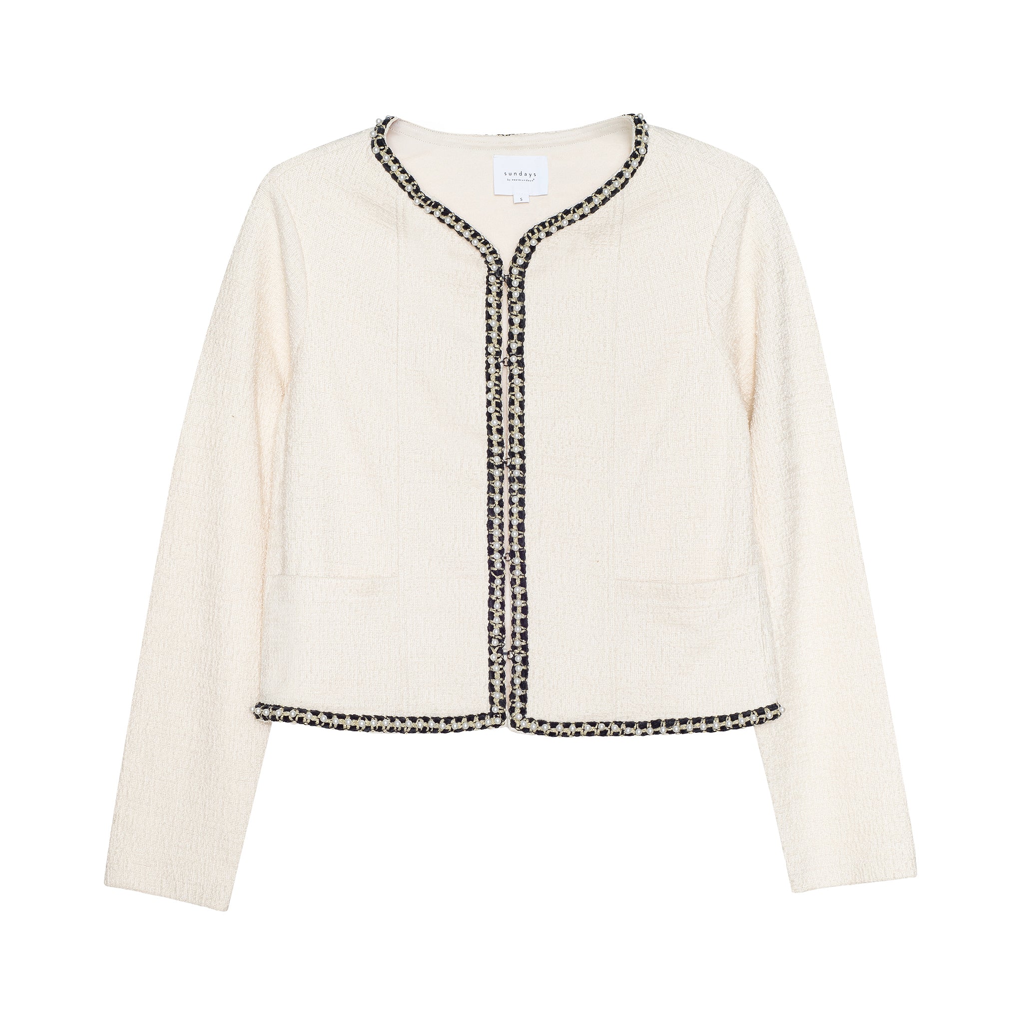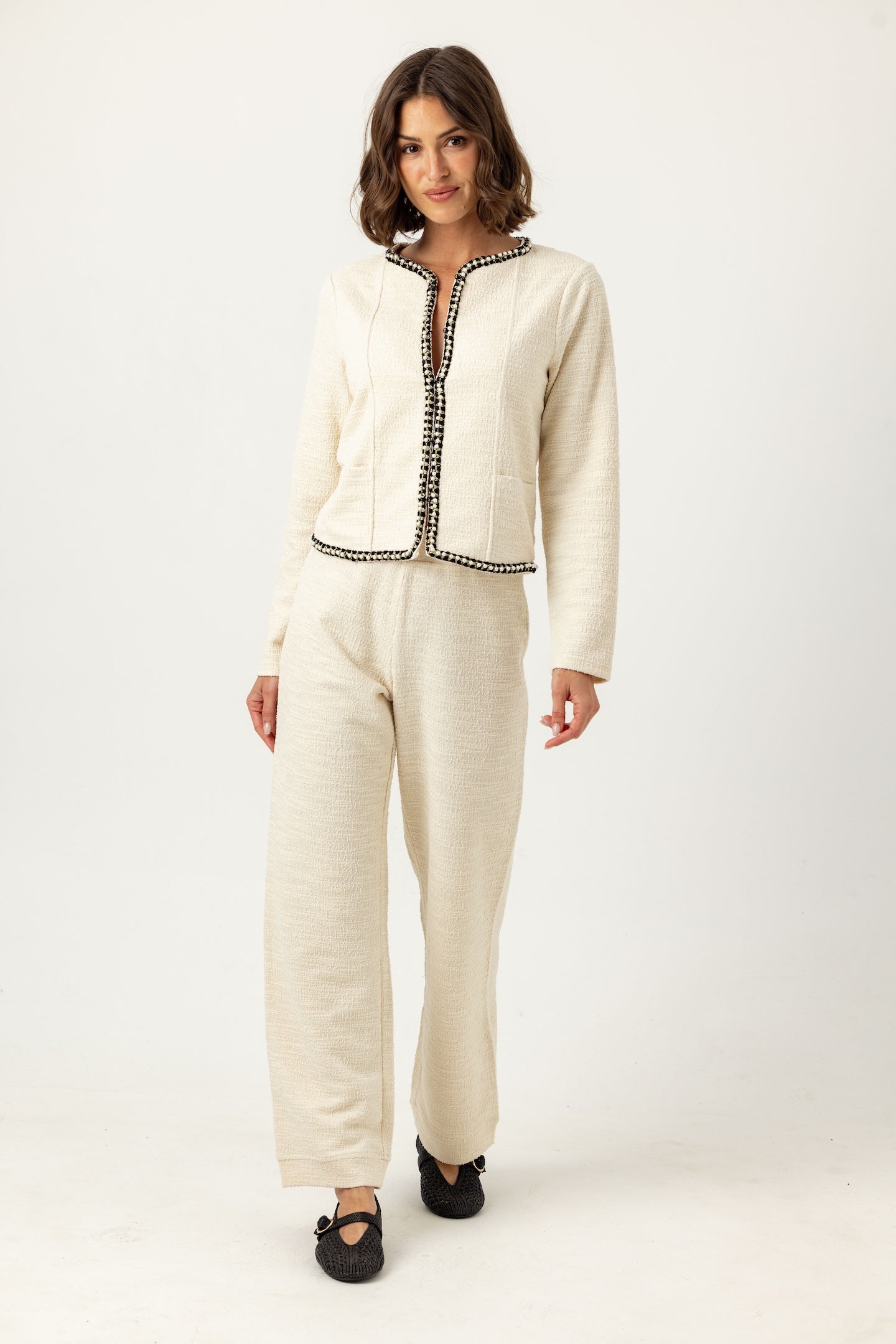 Designed in our best-selling Knit Bouclé fabric, finished with pearl ribbon trim for an elegant touch