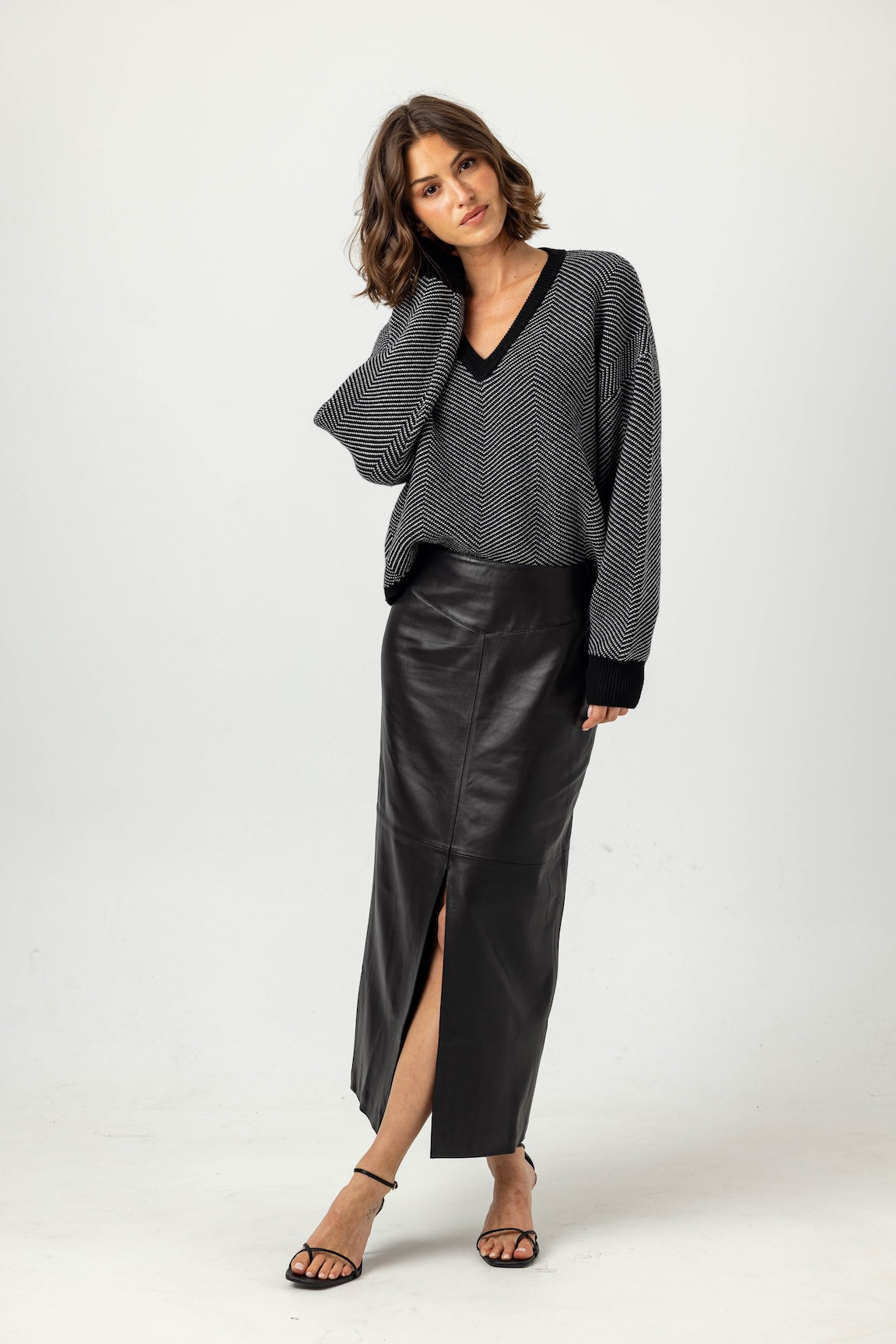 - Endless styling potential, we pair it with the Leather Monet Jacket for a matching set or layer with our luxe oversized sweater knits for cozy contrast