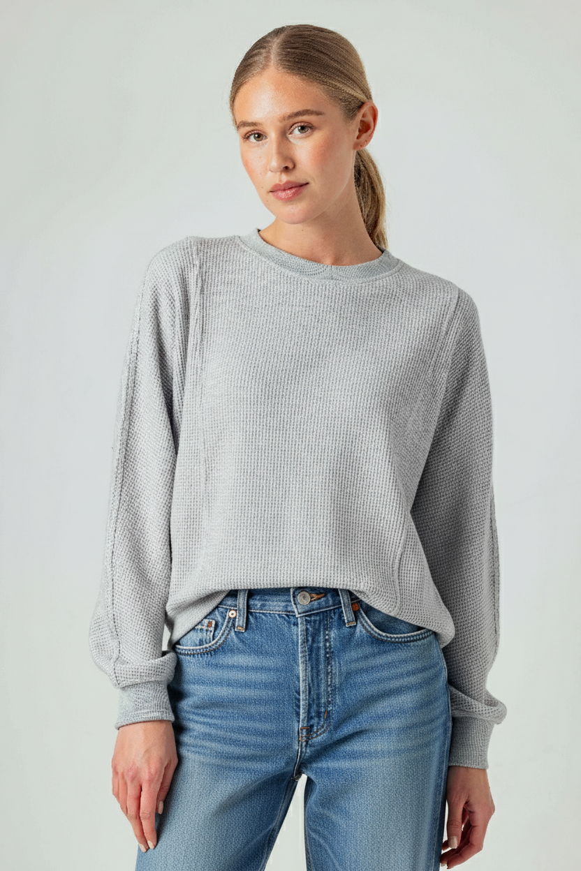 Made from our cozy Lux Thermal, the Thai Sweatshirt offers a relaxed fit with full-length sleeves and a classic crew neckline. Rubbed cuffs and neckline add subtle texture and a lived-in feel. Pair with the Nicola for the coziest head to toe look.
