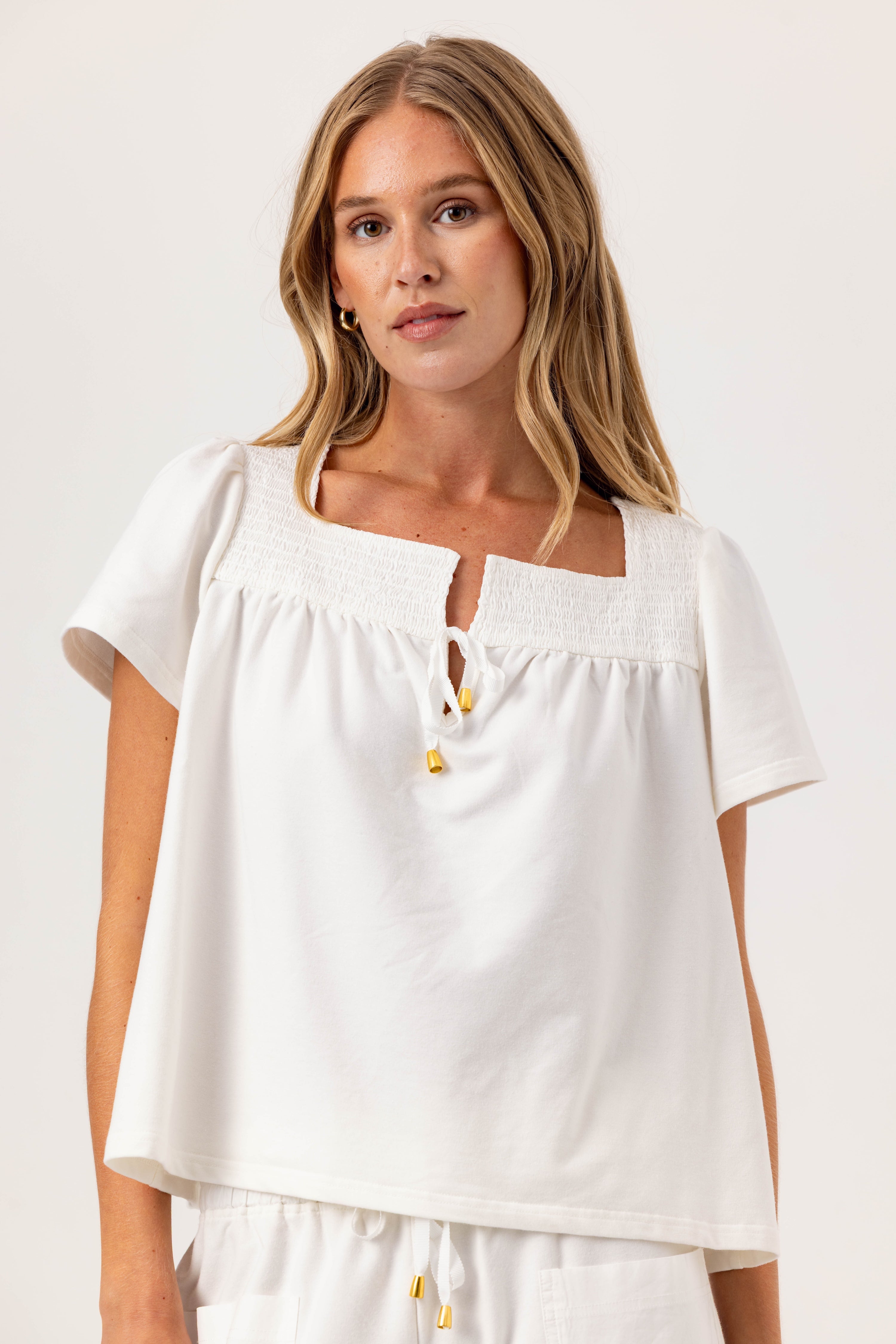 Designed for everyday wear, the Aven Top is a go-to monochrome closet staple; perfect worn alone or paired with the matching Faye Skirt or Nolyn Pants.
