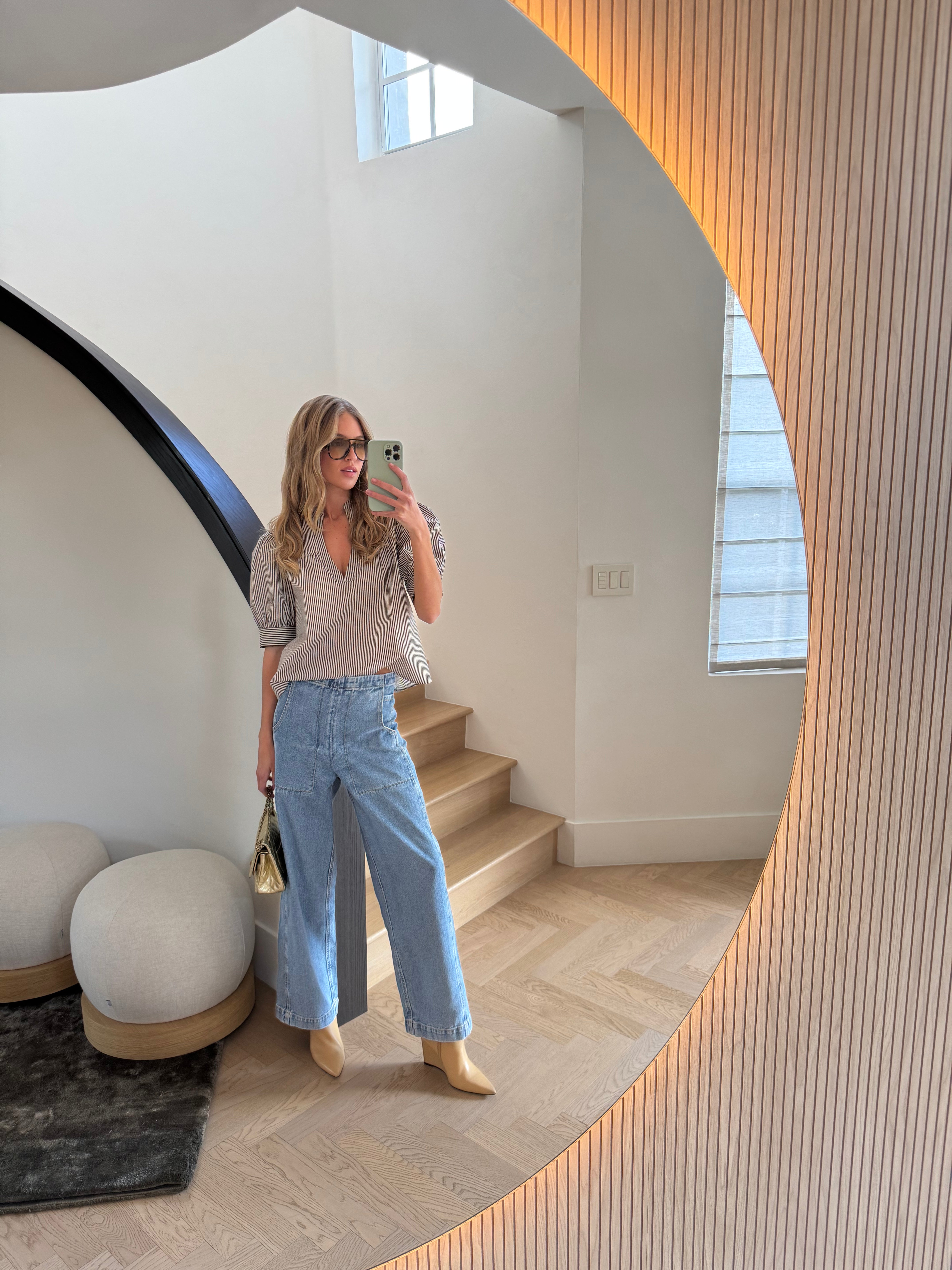Our model wears a size XS. Model measurements: 5’10” height, 25” waist, 35” hips, 32” bust. For detailed size information, please reference the size guide above.