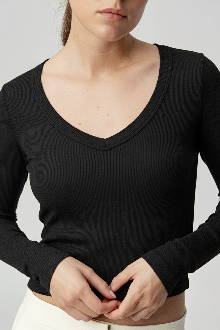 Unsere Rippen-T-Shirt-Kollektion wird immer besser! Begrüßen Sie das Larkin-T-Shirt. Dieses langärmlige, schmal geschnittene T-Shirt hat einen weiten V-Ausschnitt mit einem schicken und schmeichelhaften Ausschnitt. Perfekt für saisonale Lagenlooks oder als eigenständiges Statement-Stück. Hergestellt aus unserem charakteristischen butterweichen Rippenstoff, handgewaschen und vorgewaschen in LA.