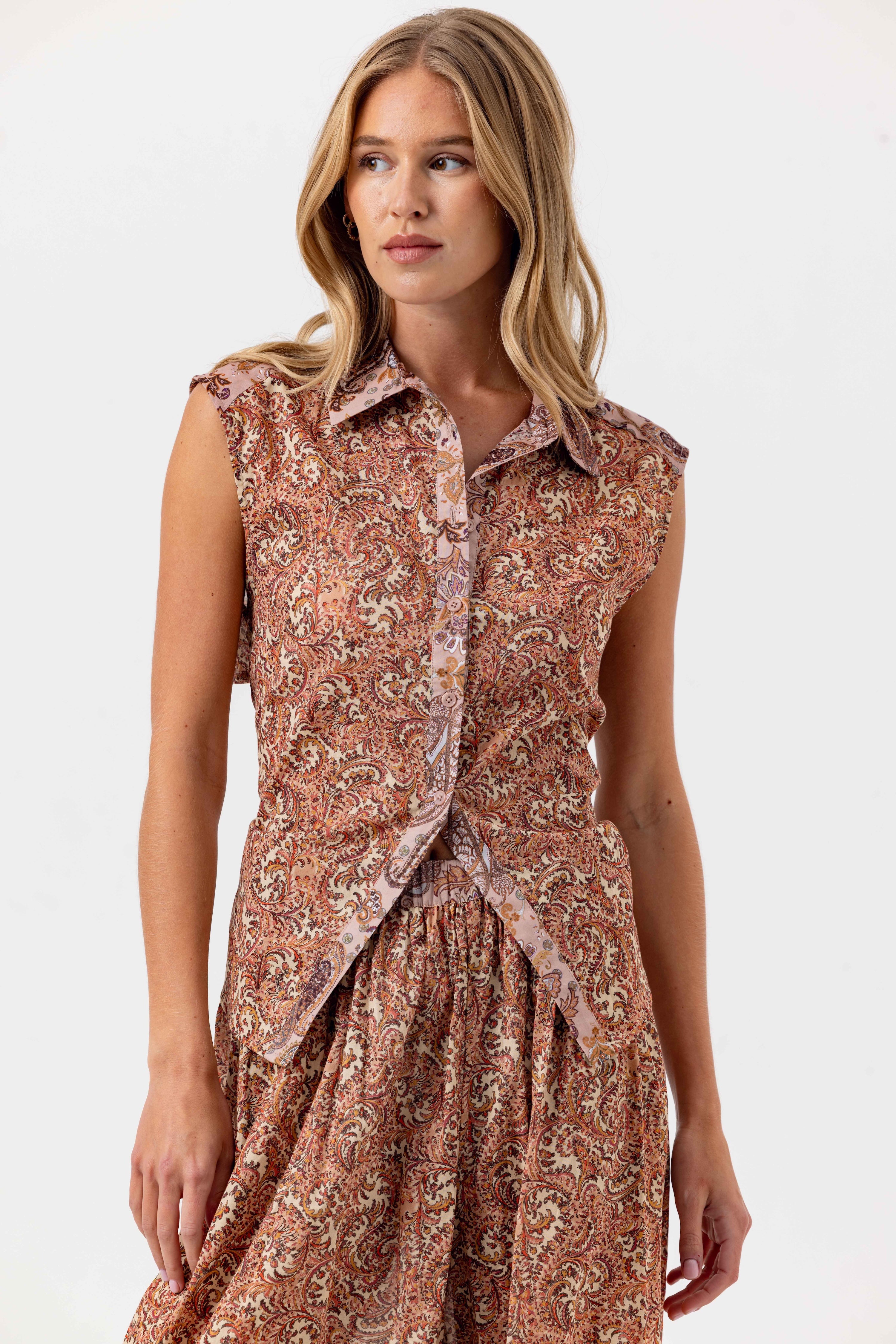 A fresh take on the classic button-up, the Arlyn Top blends a timeless silhouette with our floral vine scroll print and an unexpected open-back detail, bringing thoughtful dimension to a forever staple.